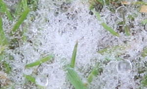 | もうちょっとアップで・・・・ 綺麗です。嫌いだけど綺麗です。 ピシウムの密な菌糸のようでもあり・・・・・ 「ダコニール」(テトラクロロインソフタロニトリル)の500倍液に展着剤を入れて、噴霧器で0.5リットル/u撒きました。 今日の展着剤は、「雨の予報」なので入れました。 病気は覚悟の上・・・・とは言うものの・・・・「頑張れA−1」 |