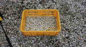 | 清掃後です。 ほんの少しやっただけです。 量販店で購入した格安玉砂利なので元から真っ白ではありません。 新品同様とは言えませんがそれなりに綺麗になりました。 洗剤を使わず水だけでここまで・・・・十分満足です。 |