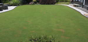 | 左の写真は芝地の南側。 殺菌剤の効力が病気の進行よりも早く出て「何とか間に合った」ようです。 |