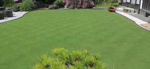マット化で、ところどころ軸刈りです。 芝刈機が沈む感じで、刈り高設定5.0mmが精いっぱい。 |