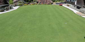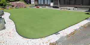 そこで今日は、成長調整剤「ビオロックフロアブル」で夜露取りをしました。 いつもと同様に液肥散布器を使って2回散布。 2mlを500cc(250倍)に稀釈してから50倍で散布(12,500倍)。 25リットル×2回÷80u=0.6リットル/u 薬剤は 4ml÷80u=0.05ml/uです。 これにより葉が変色するかもしれません。 さて、玉石の雑草がまた目立ち始めました。早く草取りしなくちゃ。 でもその前に後ろの庭木がボサボサなのでそちらが先です。 毎年5月の下旬と10月上旬の年2回の剪定です。 剪定は電動で刈るので体力的にも時間的にも楽なのですが、庭石が邪魔になってハシゴが思うように立てられずそちらに時間と手間を取られます。 はっきり言ってそれが面倒。 結局ハシゴをあっちにやったりこっちにやったりで、それが作業全体の8割くらいを占めます。 でもやらなきゃ終わらないし・・・・芝生とは関係ないですけどね・・・・ |