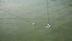 こちらは上りの真っ直ぐなラインですが乾いているとカップ付近で少し右に切れます。 なので狙いはカップ一つ左、ほぼ狙いどおりに打ち出していると思います。 |