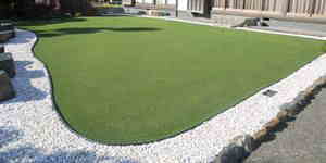 以下2枚は先週の写真です。 以前庭が高麗芝だった時に広がった芝を西側(赤色四角形)に残してあり、そこからウェッジの練習をしています。 |